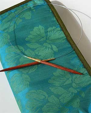 Our circular interchangeable knitting needle set offers 40 different needle and cord combinations. Made of beautiful hardwood and gold-plated connections. The threaded connection tapers for a smooth transition. Complete set includes silk compact zip case in currently available color.