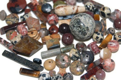 2 years ago we had a small retail store in in that store was a wall 30 foot long lined with one of a kind Gemstones. We have slowly been selling them off one strand at a time. Now we have decided its time to just have some fun we are only trying to recover 25 cents on the dollar of our cost you will find if you were to buy these beads one at a time at a beads store that most of the boxes are worth 5 to 120 times what we are selling them off for so have fun.