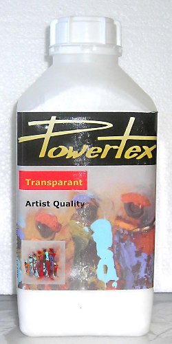 Powertex is a fabric hardener, an environmentally waterbased alternative to polyester. You can use it for all your statues, mixed media on canvas, homedecorations and jewelry. Powertex is a hardener for all absorbent preferably natural materials, such as fabric, paper, cardboard, lether, plush and fiberglass. Powertex easily mixes with wood and sand to create structures.
